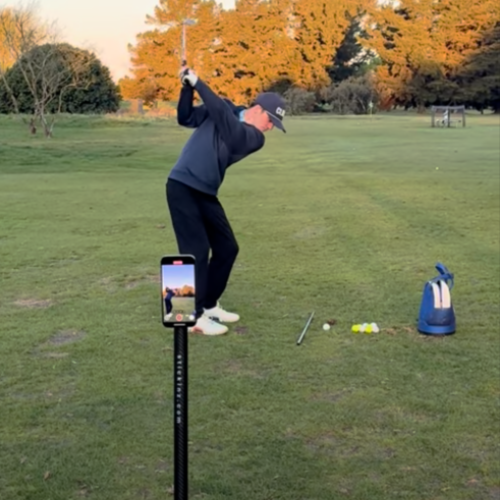 Stickinz is the easiest way to record your golf swing. Just stick it in the ground, snap your phone onto the magnetic holder, and start recording.